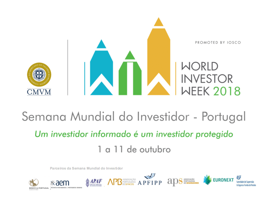 A Semana Mundial do Investidor é uma campanha mundial promovida pela IOSCO (Organização Internacional das Comissões de Valores) com o objectivo de ajudar a consciencializar os agentes de mercado e o público em geral sobre a importância dos mercados de capitais e da educação e da protecção dos investidores, dando destaque a diferentes iniciativas nesta área. Este ano tem como tema central as FinTech e os desafios e oportunidades gerados pela inovação financeira.