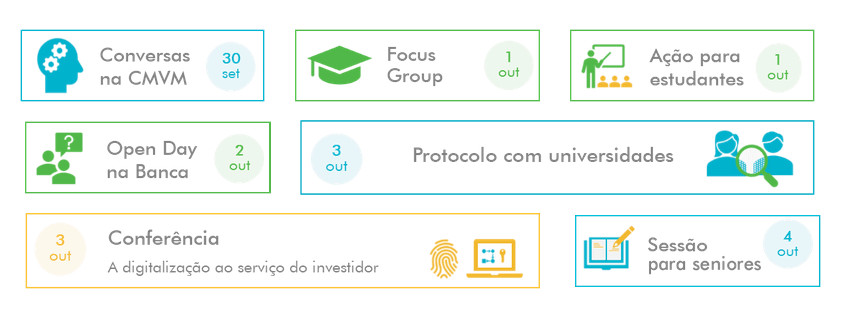 Ao longo da semana que decorre entre 30 de setembro e 6 de outubro realizam-se igualmente diversas outras acções onde serão abordados temas diversos relacionados com o mercado de capitais.