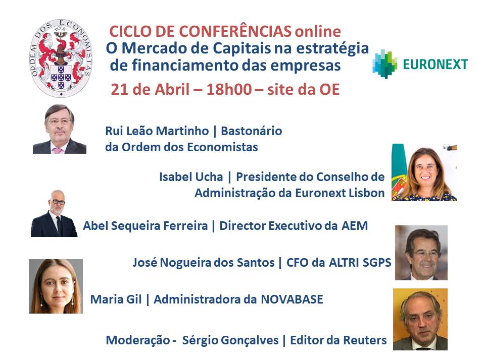 A Ordem dos Economistas organiza no proximo dia 21 de Abril, às 18h00, a conferência “O Mercado de Capitais na estratégia de financiamento das empresas”, dedicada ao debate do papel do mercado de capitais na estratégia de financiamento das empresas, no acelerar da recuperação económica e na transição para a sustentabilidade. Trata-se da primeira conferência de um ciclo que decorrerá durante o 2º trimestre de 2021, organizado pela Ordem e pela Euronext Lisbon e ao qual a AEM – Associação de Empresas Emitentes de Valores Cotados em Mercado se associa com particular gosto.