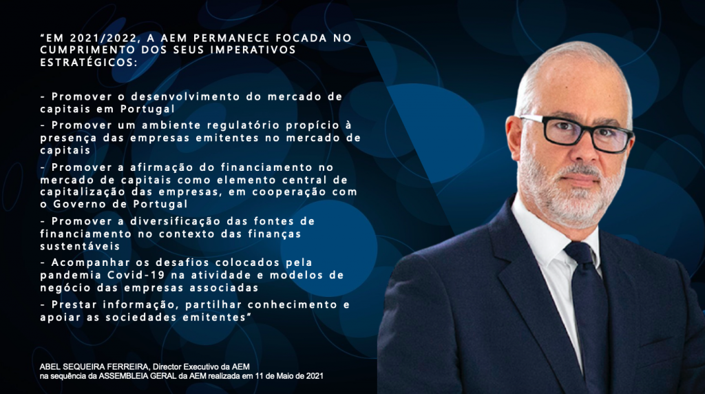 O Diretor Executivo da AEM, Abel Sequeira Ferreira, realçou que “a AEM vai continuar focada principalmente em iniciativas que contribuam para a afirmação do financiamento no mercado de capitais como elemento central de capitalização das empresas, para a diversificação das fontes de financiamento no contexto das finanças sustentáveis e para a criação de um ambiente mais propício à admissão e manutenção de empresas em Bolsa”.