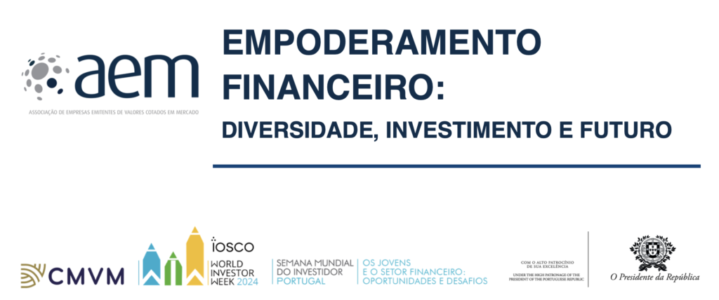 Esta sessão integra o programa da SEMANA MUNDIAL DO INVESTIDOR | 2024, de que a AEM é parceiro fundador e em Portugal é organizada pela CMVM com o Alto Patrocínio de Sua Excelência o Senhor Presidente da República.
